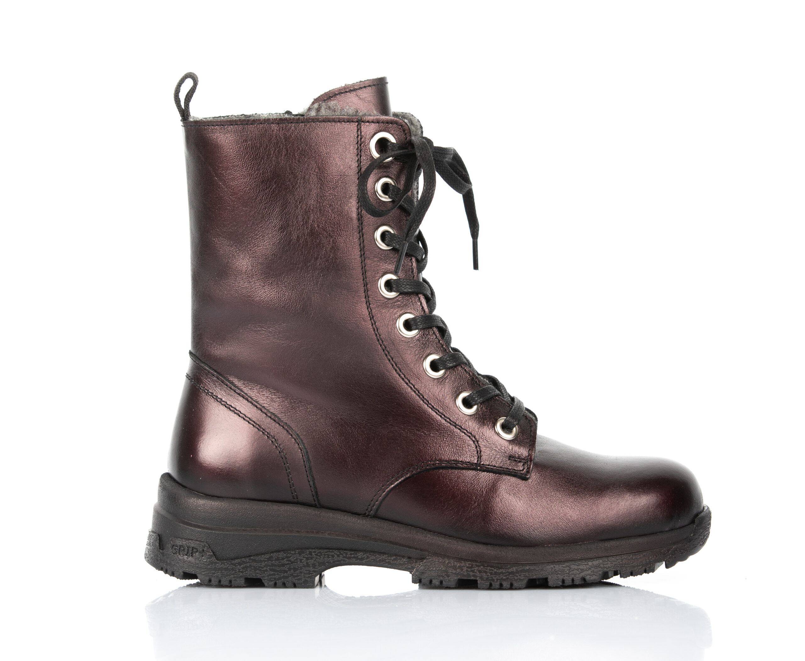 Trendikäs talvinilkkuri tilavalla varvastilalla sekä pitävällä kitka grip+ -pohjalla. Vetoketju ja nauhat helpottavat pukemista. Päällinen nahkaa, vuori 90 % villaa.